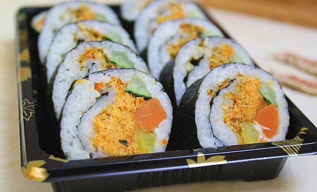 第六步:把壽司從壽司簾里取出,用刀切成厚片即可食用了!