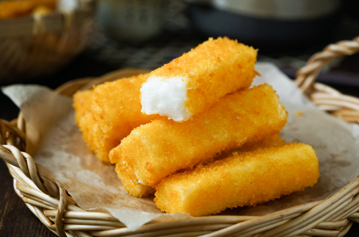 第七步:牛奶條先裹上一層淀粉,再裹上蛋液,面包糠里轉(zhuǎn)一圈(這個過程最好用手進行,用筷子容易夾碎)