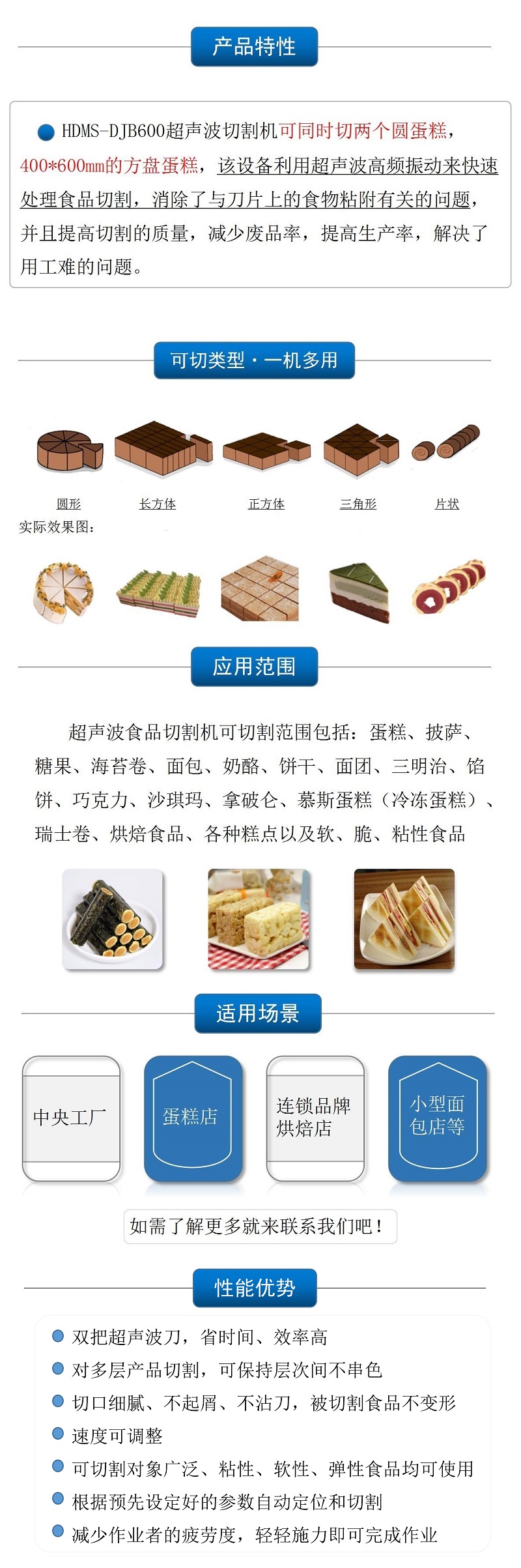 該設(shè)備配備單把超聲波刀片,可切圓形(只限一個圓蛋糕),也可切方形